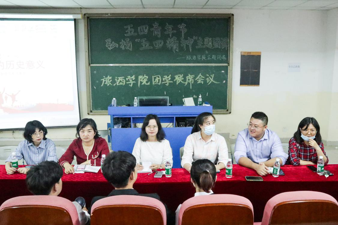 为了总结过去两周的工作经验,加强学院各个组织的交流,传达学院的工作思想,确保我院顺利开展后续的工作。我院于4月28日下午1时在书知楼1208教室召开了2021年春季学期第五次团学联席会议。我院团委副书记吴小柳、李琴,思想导师曹添、石玲、刘文琦、王曦茜、李湘婷出席本次团学联席会议,我院各学生组织负责人、各班班长以及团支书准时到场参加本次会议。