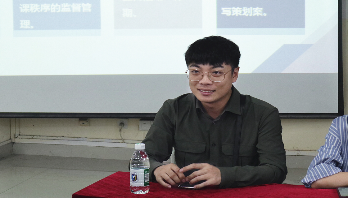 最后,团委副书记吴小柳对学生传达学院工作思想。首先,吴小柳副书记叮嘱学生干部要向班级学生传达五一假期的请假注意事项,学生们在放假期间要注意保护好自己的人身安全。其次,在查寝方面,吴小柳副书记表示各班级要传达好会议精神,保证做到与组织间的数据统一。她还强调,各组织以及学生干部须积极配合工作,加强彼此间的交流,营造好毕业季的氛围,促进学院后续工作的开展。
