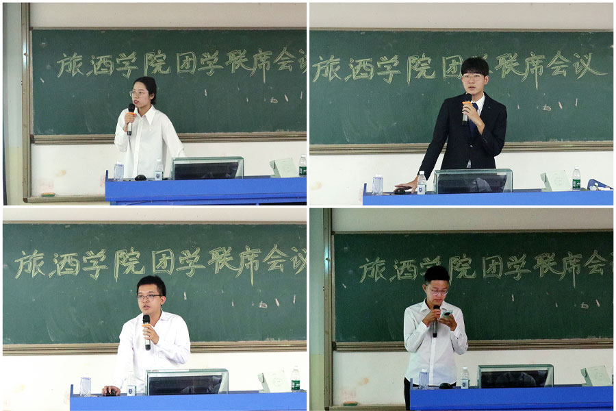 会议伊始,团委负责人进行本次会议考勤记录汇报,对到场人数进行统计公布。随后,我院各组织负责人对部门近两周的工作情况进行了总结汇报,反思了工作上的不足,针对工作上产生的问题提出了解决方法并介绍组织后续的工作内容和计划。