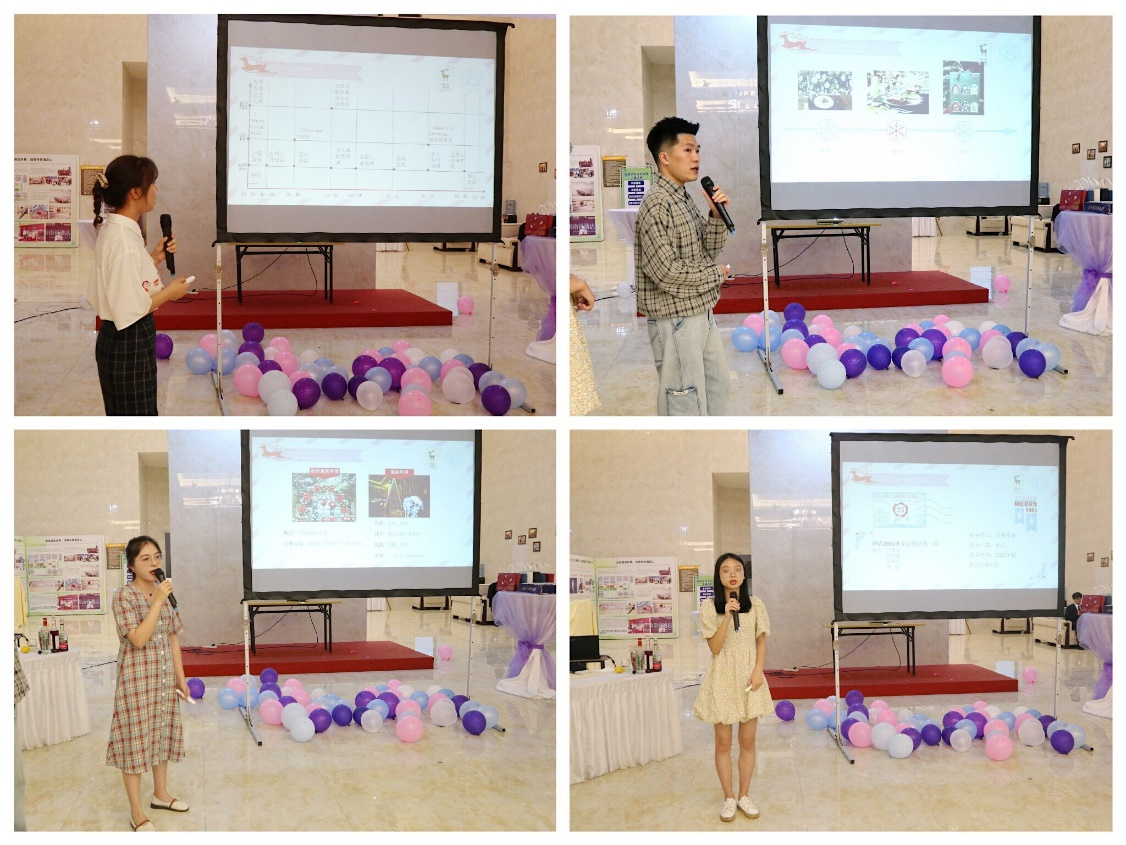 在主持人简单地介绍完教师后宣布比赛正式开始,本次比赛的主要内容是参赛学生以小组为单位合作设计一场宴会。于学生而言,这不仅是一场宴会设计比赛,更是一次前辈与后辈经验交流的机会。在本次宴会设计比赛中,各小组将除夕、中秋、元旦、圣诞等节日作为宴会主题,展示整体宴会设计的原因,宴会开展流程以及宴会台面、菜单的设计。18级学生姜平小组的宴会设计汇报中,更是细化到整个宴会的服务流程。学生们根据不同的宴会主题,设计出不同的宴会场地,在以元旦、除夕、中秋为主题的设计作品中,学生们也把中国传统文化融入到其中。19级学生的作品亦是精彩纷呈,学生们将元旦与毕业师生之情融合,在元旦之际回忆曾经的校园生活,在整个宴会布景中将中国文化与校园文化共同展现,这场以情动人的毕业生宴会更是令人期待。