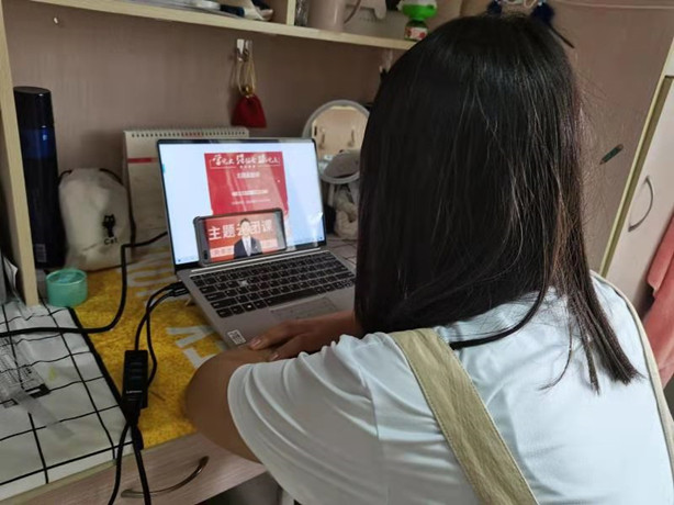 相逢当代,感受新青年的理想信念。学生张传鑫在党史直播中认识了许多四奖章获得者,他们以血肉之躯创造令人敬佩的贡献,张传鑫表示从他们身上学到了许多优秀品质。在观摩继往开来的重大工程时,学生刘书韩既感叹中国发展科技的不易,又赞叹各个伟大工程的成功,更加坚定了自己要奋发向上的理想信念。