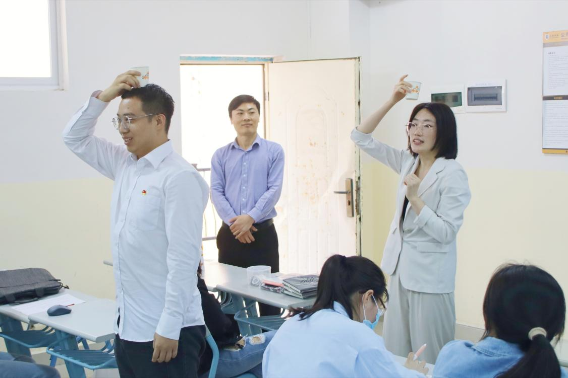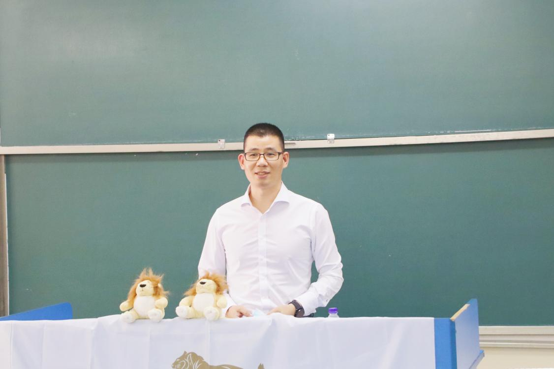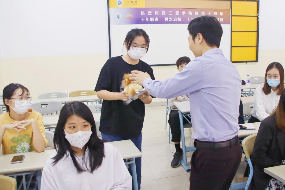 人力资源招聘部经理王晓博为发言学生分发小礼品