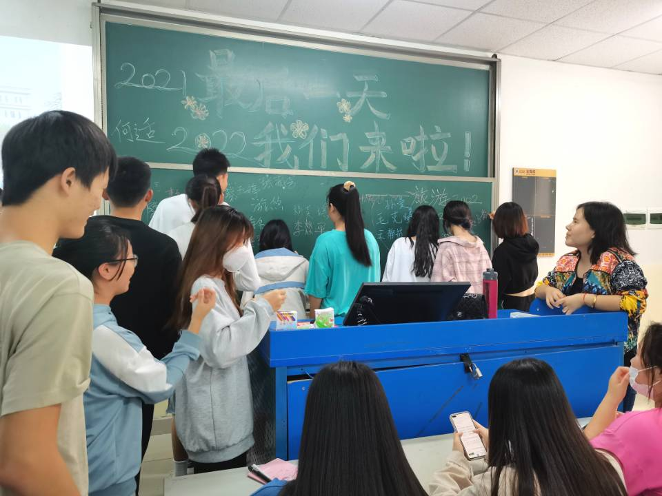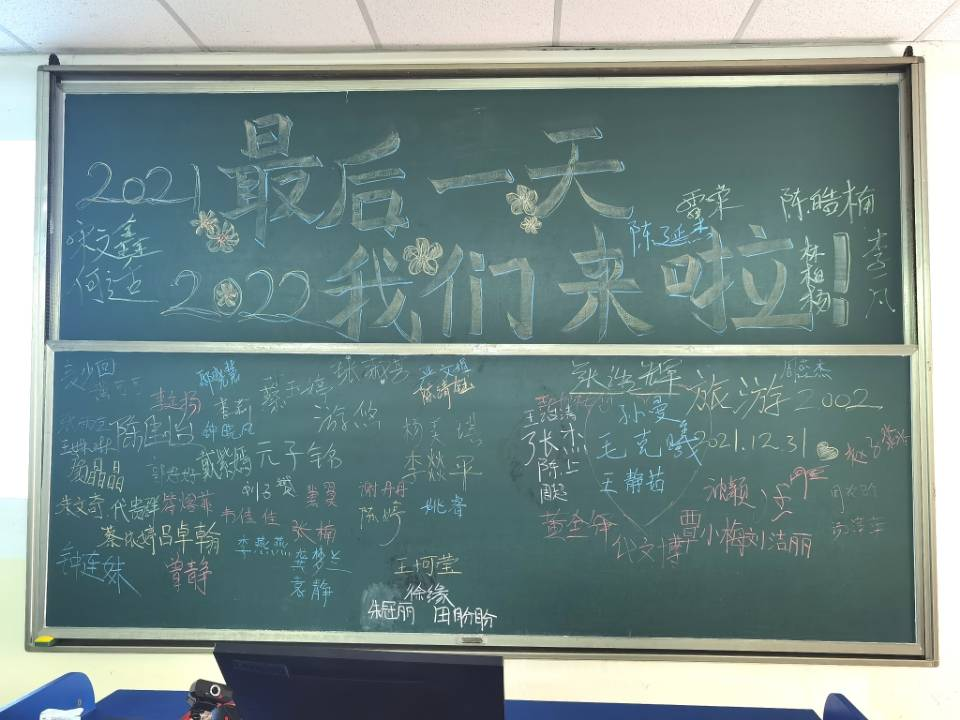 粉笔书写下旅游2002班每一位成员到来的痕迹,相片定格下的是旅游2002班的美好时光。凡是昨日皆为过往,凡是将来皆为可盼,未来有迹可循。愿旅游2002班每一位成员在2022年能够踔厉奋发、笃行不怠。