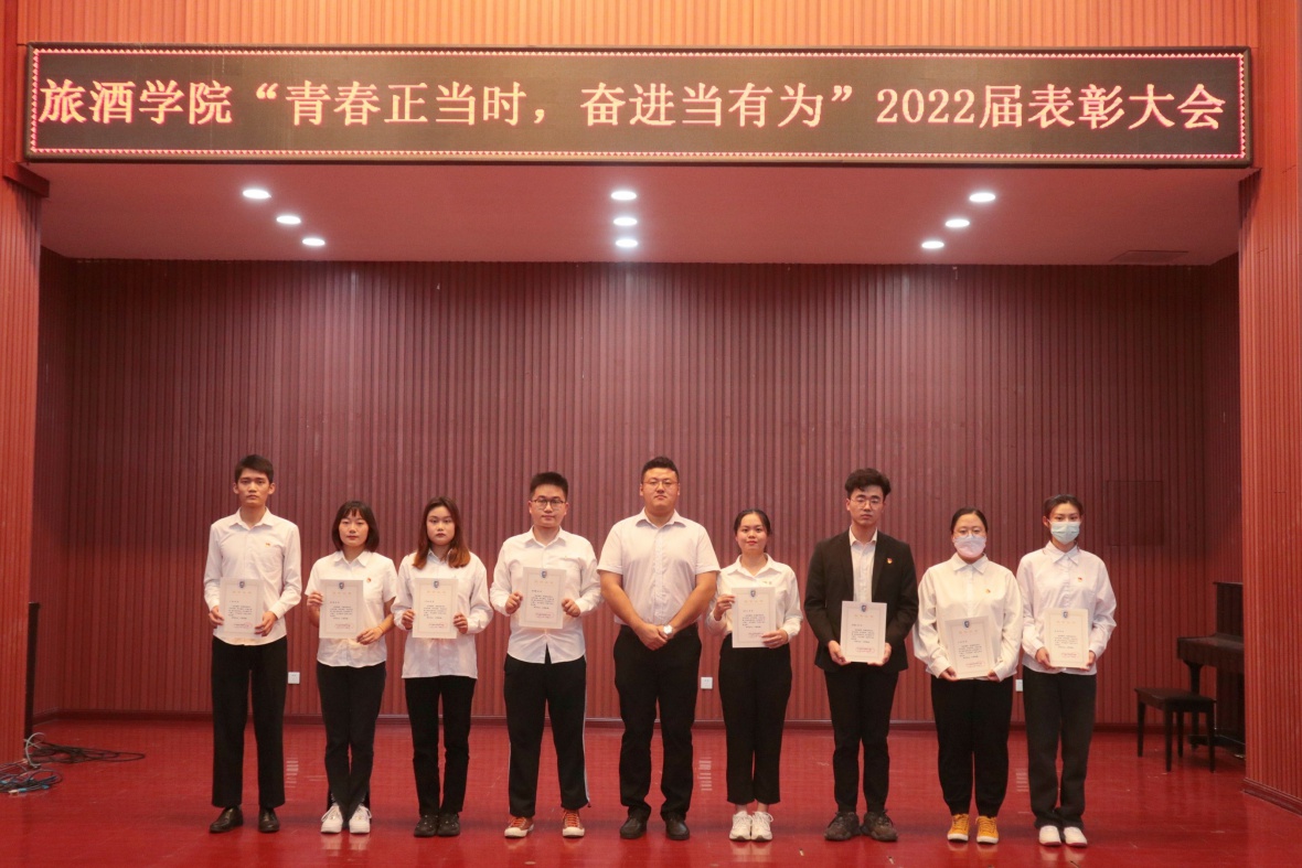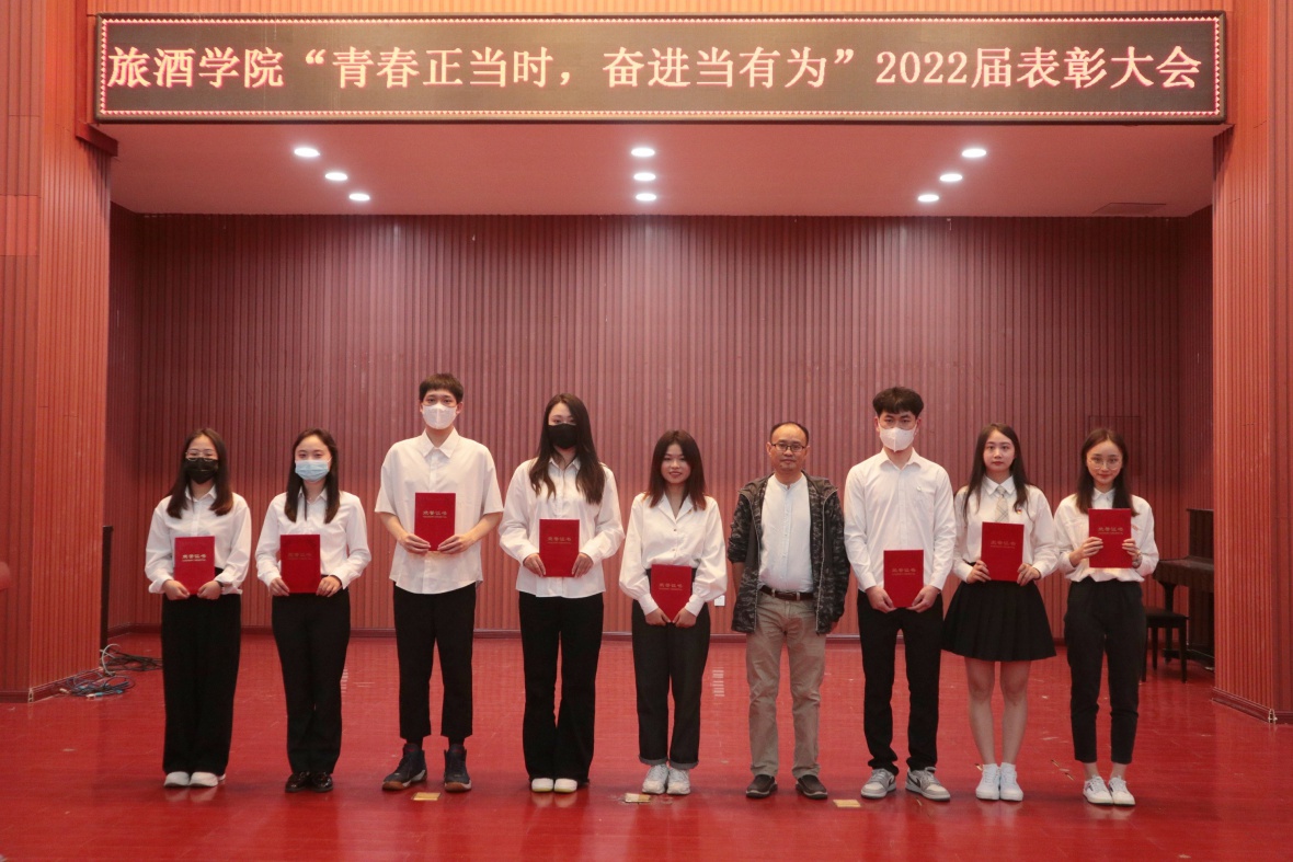 为表彰过去一年中我院优秀学子在工作中所作的突出贡献,并激励我院学生学习先进、争做先进。1月5日下午4时,我院2022届学业先锋者、优秀学生干部及优秀党员、入党积极分子表彰大会在东区书会堂隆重举行。我院团委副书记吴小柳,国际旅游管理专业主任闫静,会展经济与管理专业主任雷春,思想导师王曦茜、曹添、张语芯出席表彰大会,我院部分学生参加大会。