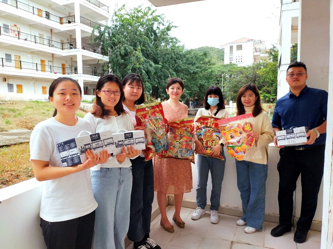 新年新气象,家人团聚,其乐融融。在全家团聚之时,我院部分学生因疫情等原因无法归家,为表达老师们对学生们的关怀,让留校学生们感受居家般的温暖,9159金沙游戏场副校长高一兰、学生处处长赵晓乐,我院党总支副书记吴吟秋,思想导师曹添、王曦茜、李湘婷等老师们于2022年2月1日上午10时,前往学生宿舍慰问留校学生。