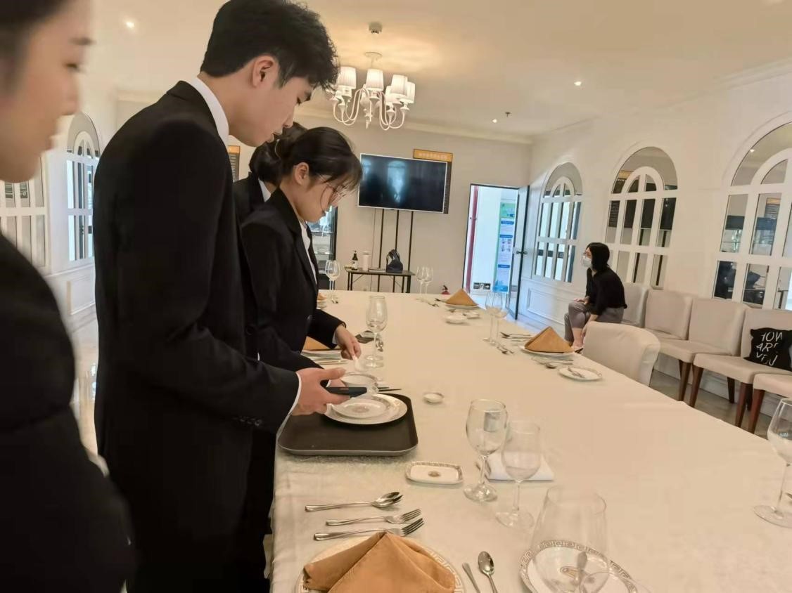 了解并熟习餐饮礼仪是每位酒店专业学生必备的专业基础,为更好地学习餐饮文化的内涵所在,酒店管理2101班于3月3日下午两点在白鹭苑餐饮实验室进行了《中西餐服务》的实操学习。