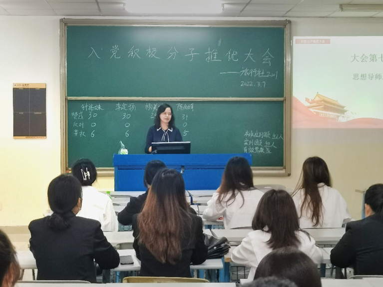 2022年3月7日,旅酒学院邮轮2001班、国旅2001班、旅行社2001班入党积极分子推优大会分别于书知楼2108、2107、2106教室召开。此次推优大会在思想导师、团委干部、班干的精心筹备及学生们的配合下顺利开展,最后完成了本学期入党积极分子的推优工作。