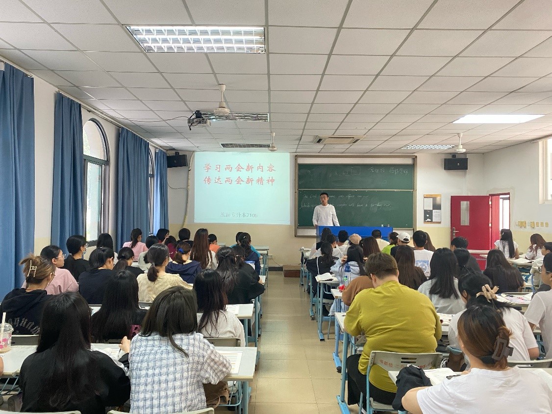 为了引导我班学生深刻领悟党中央人民至上的价值理念及马克思主义的使命诠释,我班于3月10日上午9时,于书新楼5西106教室开展学习两会新内容、传达两会新精神的主题班会。十三届全国人大一次会议上习近平总书记的铿锵话语鼓舞着人民,全国政协委员围绕党和国家结合民生问题认真撰写提案,积极提出意见。当代大学生要立足当下,坚定理想信念,为实现中国梦再立新功。