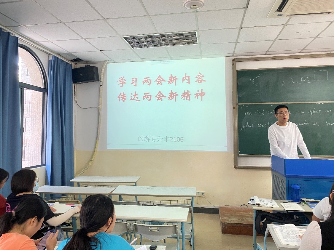 我班班长郭伟在班会上详细地介绍了两会的重点话题及召开意义,并且了解了在当前国内外严峻的经济形势下,食品安全问题、住房问题、就业问题等民生问题。同时民生问题一直是人大代表和政协委员关心的话题。我班学生对两会的内容和精神有了深刻的认识和理解。此次班会我班学生表示收获颇多,在校园里不仅仅可以学习专业知识,还可以通过主题班会学习到新知识,明白了新时代年轻人的责任和担当。
