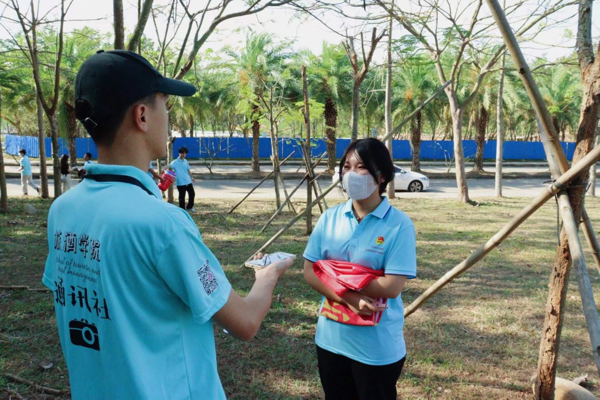 三月的三亚,早上九时的凤凰林,微风轻拂。我院师生在合照留念后正式开始了本次植树节特别活动。明确任务分工后,刘文琦老师与张语芯老师同学生们擦洗我院历届校友毕业之际所种毕业树的纪念石,捡拾树林中的垃圾。吴吟秋书记带领着我院学生们为毕业树浇水,并再次描写纪念石上的字。一分耕耘一分收获,一片树林一片浓荫。我院校友在校之时的耕耘为其带来不尽的收获,在校之时的援手也帮助着我院学生攻克许多困难。此时的他们,也许在某个岗位上不懈努力,而我院学生们也在此刻通过自己的行为来感谢他们。