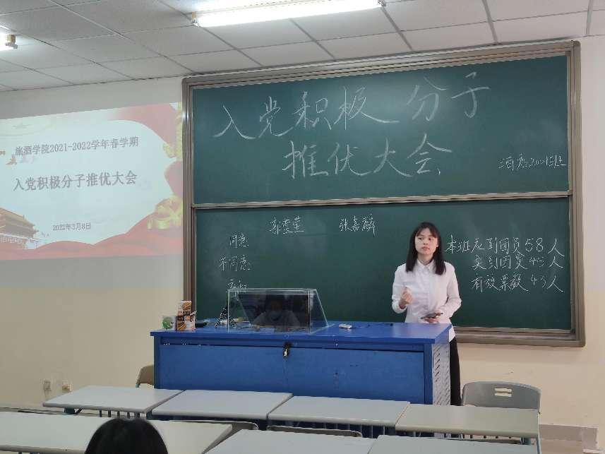 党旗昂扬在前,为人民指引着奋进的方向,积极加入中国共产党,为祖国的繁荣富强贡献出自己的一份力量,是当代大学生应尽的责任与义务。为推选出入党积极分子,我院会展经济与管理2001班、酒店管理2001班与休闲体育(高尔夫)2001班于近期召开入党推优大会。我院团委副书记吴小柳老师出席各班推优大会,各班部分团员参加大会。