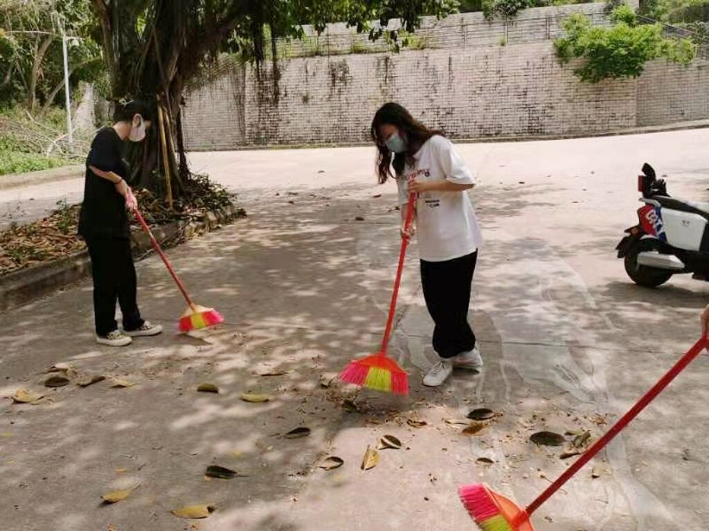 春风拂过,满树的落叶零星点点飘落在地上。下午2时,智慧旅游2101班的学生们自行携带清扫工具准时到达绿化地点进行活动签到及集体合照。在知晓需要打扫的范围后,学生们开始了辛勤的劳作。“校园是我家,美化靠大家”,在此次校园绿化活动中,学生们有的负责清理地面上的尘土,细扫着每一片落叶,有的负责捡拾草坪中的垃圾,还有学生借用了更大的扫把只为能够将地面打扫得更加干净。所有人都勤勤恳恳,一丝不苟地忙碌着,从不放过任何一处枯叶。高效的清理速度,完美的分工合作,经过一个多小时的努力,本是落叶零星的地面因学生们的到来变得焕然一新。