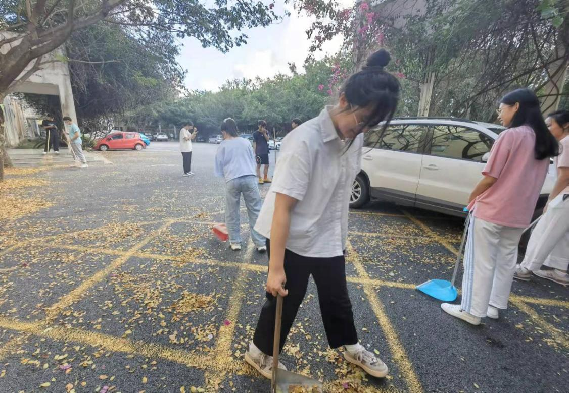 活动结束后,我们放好扫除用具集合签退,将地上的落叶带走,将干净整洁留下;将炽热的心带走,将美好的环境留下。我们挥一挥衣袖,不带走一片云彩。