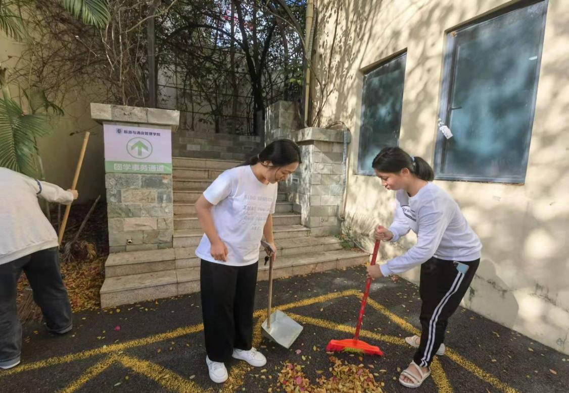 热爱劳动是当代大学生需要具备的优良品质之一。为了使学生能更加深入地了解劳动的意义,3月23日下午4时,酒店管理2101班在白鹭苑开展了劳动课。