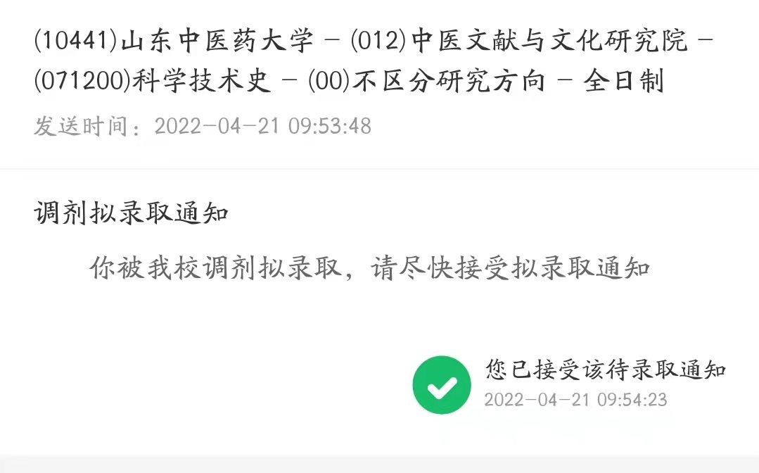 在大学期间,汤培哲获得过两次学习优秀二等奖学金,也通过了英语四级考试。汤培哲表示在高中培养的良好的学习习惯使得其拥有着较为良好的成绩,而这个成绩也使得其在学习上有着积极性。不仅激发了考研的想法,也为考研打了基础。同时,汤培哲认为调剂也是考研过程中重要的一部分,他建议其他学生们在第一志愿无法复试或复试失败后都不要轻易放弃,可选择在调剂系统进行下一步的志愿填报。在调剂系统中挑选心仪的院校填报志愿,多方向的填报能够获得更多的机会顺利成为研究生。