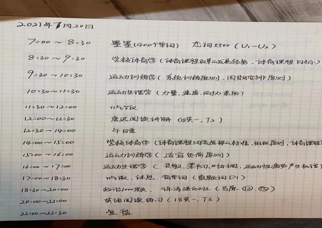 高尔夫1801班学生叶钊阳的备战时间安排