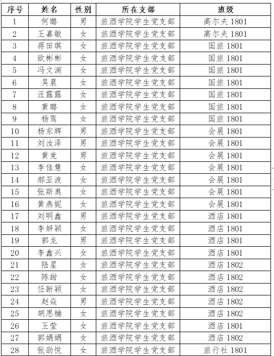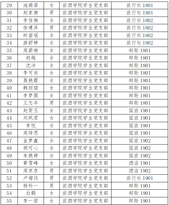 经党组织一年来的培养教育和考察,预备党员何璐等五十五名同志预备期满,拟在近期召开党员大会分别讨论何璐等五十五名同志的转正问题。为了进一步增强发展党员工作的透明度,严格组织发展工作程序,防止不正之风,确保发展新党员的质量,现将预备期满的预备党员名单公示如下: