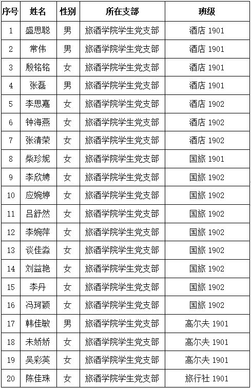 为了进一步增强发展党员工作的透明度,严格组织发展工作程序,防止不正之风,确保发展新党员的质量,拟发展下列同志为中共预备党员,特此公示。