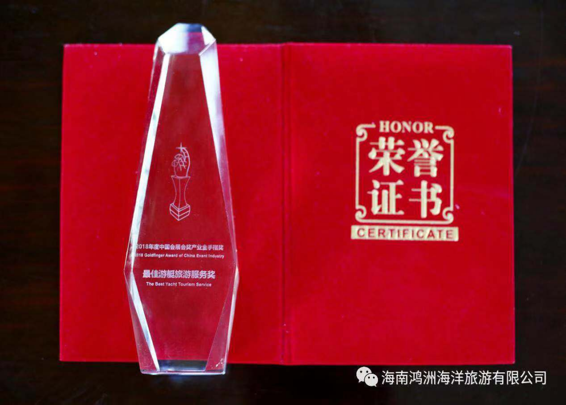 2018年,海南鸿洲海洋旅游有限公司荣获“中国会展(会奖)产业年度金手指奖·最佳游艇旅游服务奖”奖项!