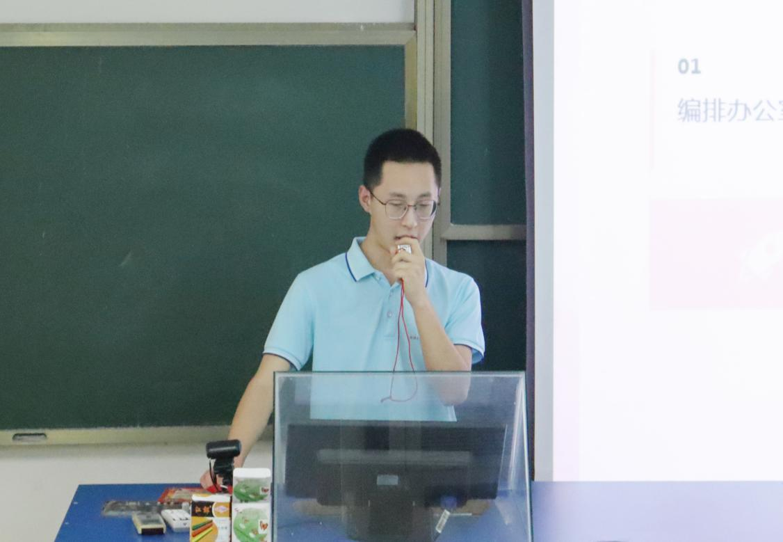 紧接着,刘文琦老师上台讲话。在谈及到课率和到寝率时,刘文琦老师强调班委作为班级的核心力量,一定要恪尽职守,认真高效地完成各项工作内容,只有这样才能帮助和督促班级成员们做到自律自制。同时 刘文琦老师也嘱咐学生干部尤其应当铭记自己的初心,踏实肯干,严于律己,自觉起到带头作用。