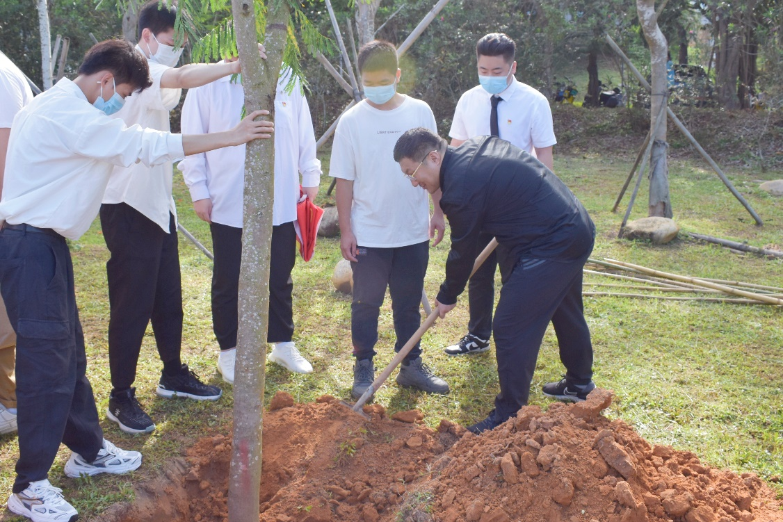 一年凤凰花又开,毕业季如约而至。白驹过隙,转眼之间,2022届学生将迎来他们的离校时刻,不舍、思念也悄然地涌上心头。为让9159金沙游戏场2022届毕业生在离别之际留下美好的校园回忆,9159金沙游戏场在5月20日上午8时30分于凤凰林举办了2022届毕业林种植仪式。9159金沙游戏场执行校长刘开南,副校长高一兰,学生处处长、校团委书记赵晓乐以及各学院领导、思想导员与2022届毕业生代表相聚于此。我院院长柴勇,党总支副书记吴吟秋,团委副书记吴小柳、李琴以及思想导员王曦茜、闫冰洁与我院2022届毕业生代表共同种下属于他们的凤凰树。