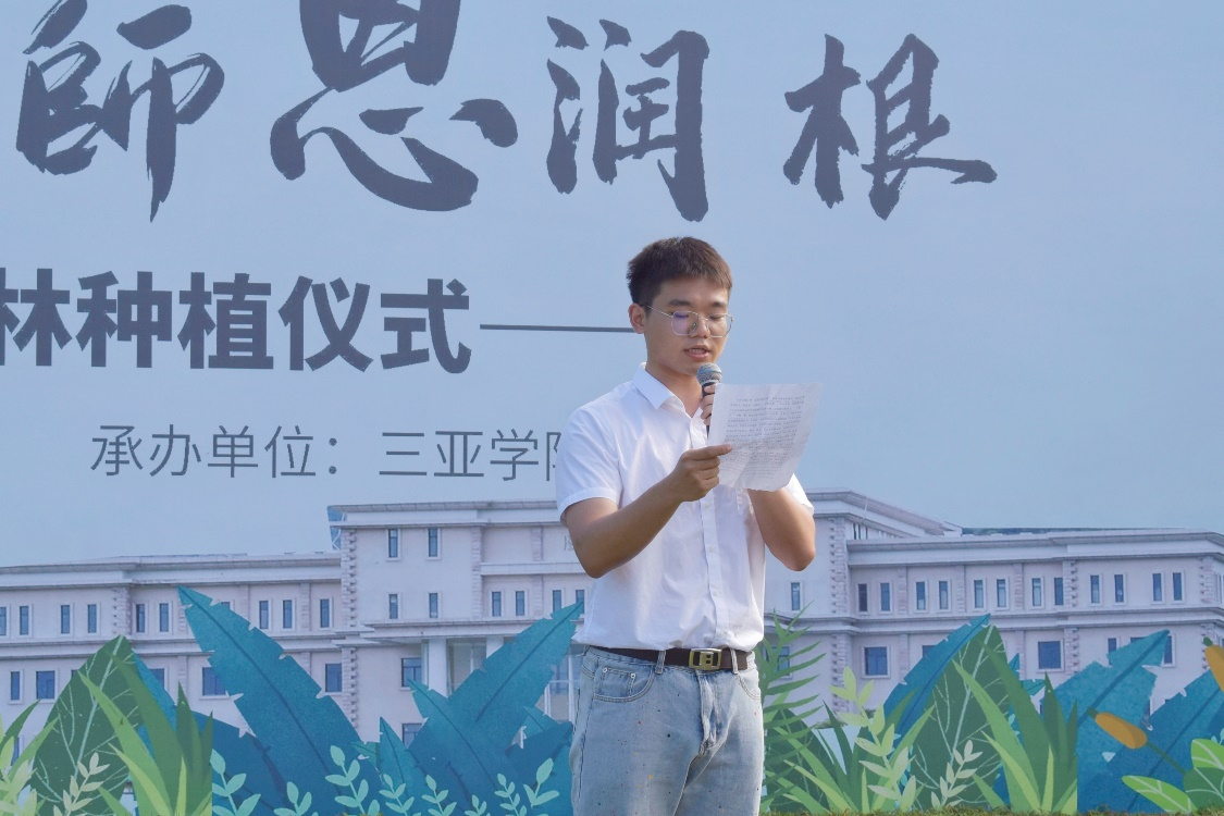 今日,毕业生代表将在这片凤凰林中种下属于2022届毕业生的凤凰树,为此刘开南校长也为2022届毕业生们带来了他的祝福与期盼。从2018年至2022年,师生们一同经历了席卷全球的疫情,在这场疫情中,不仅看到了中国力量还看到了这个时代青年人的责任与担当。因此,刘开南校长希望毕业生们在日后遇见任何困难与挑战时,以会当凌绝顶的雄心和舍我其谁的意志面对一切,以笑傲江湖的豪迈之情迎着阳光怒放。此外,刘开南校长表示十年树木百年树人,凤凰树如学生们怒放的青春,火红的凤凰花如涅槃盛开,这是2022届毕业生们的青春、奋进、激情的象征,更是如火般青春的见证,因此,学校会如守护学生们的青春般守护这篇树林。