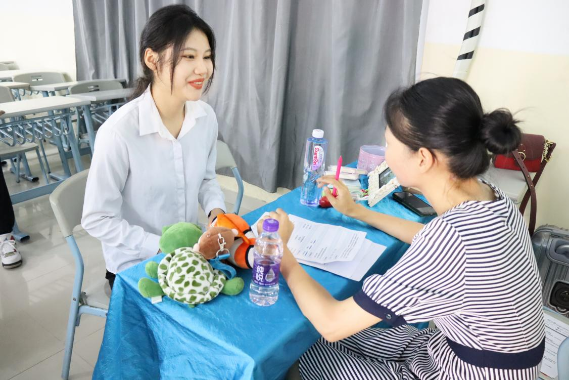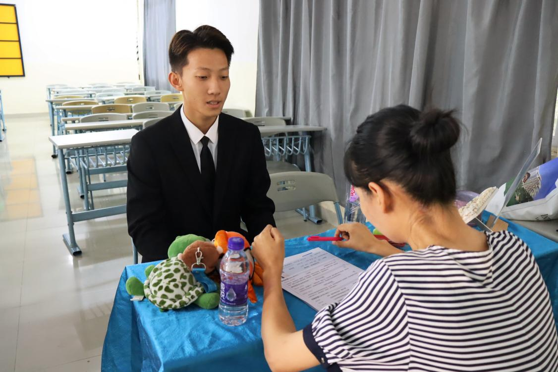 在介绍岗位时,陈经理主要强调了旅拍客服专员需要有较强的宣传意识、销售意识以及服务咨询的能力。而康乐接待员主要负责儿童中心以及泳池接待,这一岗位要求员工性格开朗,有耐心和亲和力,并具有较强的表达能力和服务意识。同时陈经理还介绍了酒店福利,三亚康年酒店不仅宿舍便利、提供餐食,在实习期间还能进行健康体检。酒店还会举行月度美食节,为员工提供语言、技能发展培训,并且对于优秀员工发放奖励,员工待遇优渥。介绍完毕后陈经理对我院学生进行面试。