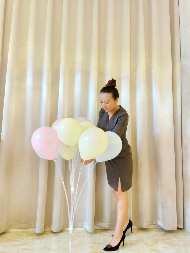 图为张南老师指导学生布置气球场景