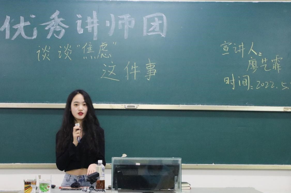要克服生活的焦虑和沮丧,必须先学会做自己的主人。为了减轻我院学生对于学业和实习的焦虑,帮助学生更好地认识自己,旅酒学院于5月25日下午2时于书知楼2105教室开展了主题为“谈谈‘焦虑’这件事”的“优秀学生讲师团”宣讲会,我院酒店1901班的学生廖艺霏为宣讲会主讲人,我院学生积极参加。