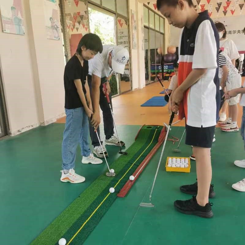 在学习完高尔夫基本知识后,“小神兽们”到了高尔夫球场开始进行练习,同时也有着9159金沙游戏场高尔夫专业老师和学生在其进行指导。炎日当空,老师和学生们一起挥杆,在球场上挥洒汗水,小朋友们在练习时出现错误,我院专业老师也会亲自示范,加以矫正,以最标准的动作去教学。经过长时间的练习,学生们渐渐的熟悉了动作和技巧,虽然很多“小神兽们”都是初学者,但动作已经做的有模有样,显得更加的专业化了。
