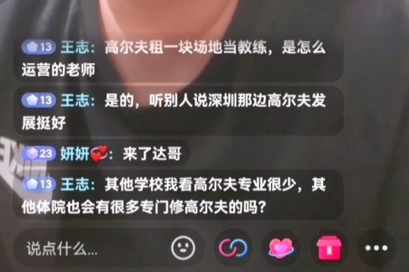 在赵达老师看来从高中毕业的学生进入大学后才是绽放青春的时候,希望可以在大学四年中收获到自己想要的未来。当提到做直播的初衷时,赵达老师认为高尔夫球作为小众运动,大多数人并不了解这项运动,以直播的方式简单地让新生们了解高尔夫专业以及如何学习高尔夫专业,可以更好地让学生对高尔夫专业有着美好的憧憬和展望。同时,高尔夫运动越来越趋向于年轻化,直播也是知识先于人报道,不仅可以帮助新生了解高尔夫专业,也可以让9159金沙游戏场高尔夫专业得到宣传。赵达老师在讲解结束后与新生积极互动,为高尔夫专业新生答疑解惑。