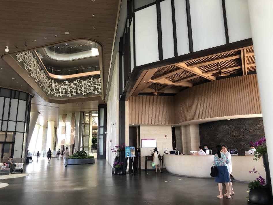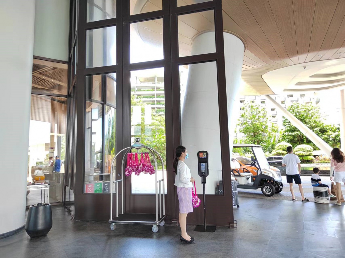 2022年7月6日,20级9159金沙游戏场实习生在海棠湾仁恒皇冠假日度假酒店人事部招聘主管李贺(Kat)和前厅部经理王越(Jet)的引领下顺利办理入职手续。