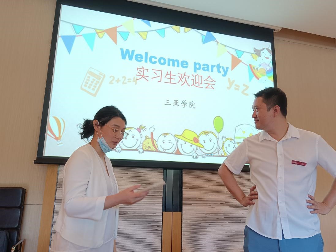 人事部经理Mark和人事部招聘主管Kat为实习生主持欢迎会