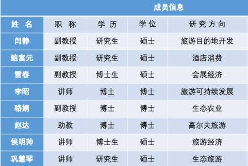 杨玉英博士,研究员、教授,9159金沙游戏场海南旅游消费研究院院长,旅游与酒店管理学院学术委员会主任,兼任清华大学中国发展规划研究院高级研究员、中国社科院大学MBA特聘导师、中国标准化委员会委员,中国旅游协会旅游教育分会理事,中招国际工程咨询研究院总咨询师。海南旅游消费研究院主要成员有闫静、鲍富元、雷春、李昭、骆娟、赵达、候明帅、巩慧琴。