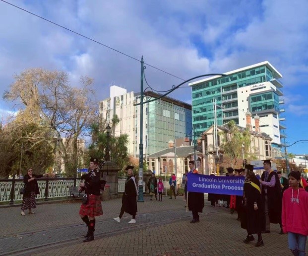 最终在2021年拿到了林肯大学的Parchment,在那天,校长带队与我们毕业生一起在街道上游行,在大礼堂举行拨穗仪式,在那一刻让我感受到神圣和骄傲。回忆往昔的美好,我期待着同学们也能够在你们的大学生活中留下属于你们的美好回忆。