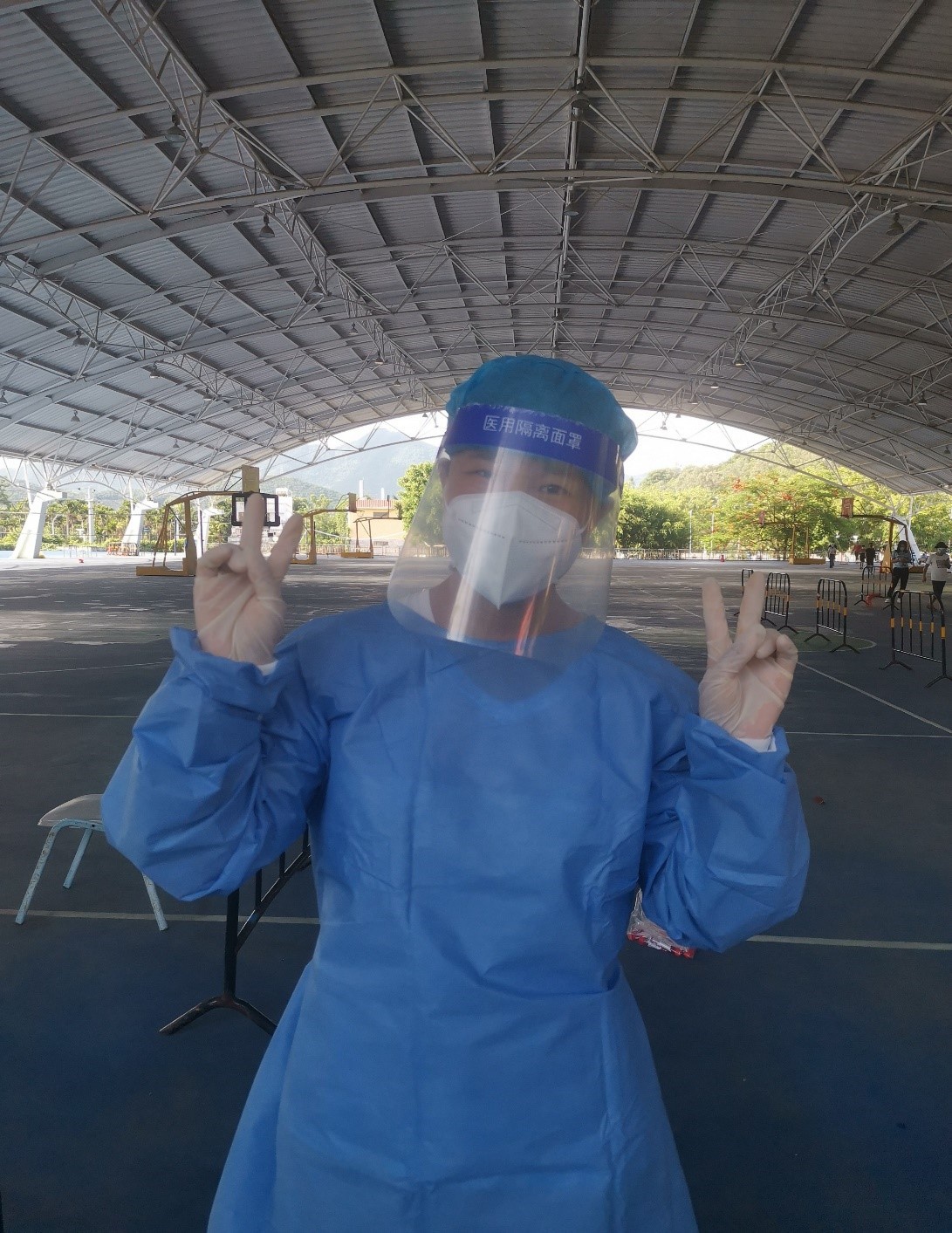 随后我院通讯社干事采访赵小丽老师时,老师对此表示:即便在疫情期间也可以让学校保持安全,用焕然一新的面貌迎接同学们的到来。在核酸检测时通过提前学习手机操作,发现也没太大的困难,反而觉得疫情期间能够在校做防疫志愿者而感到骄傲。在赵小丽老师检测的核酸队伍中大部分都是海南人,会出现听不懂海南话的问题,在其他工作人员的协助下愉快的完成守护校园的职责。赵小丽老师觉得很自豪能够在抗疫期间做出一份小小的贡献,虽然大家都穿得严实并不知道彼此是谁,可是一个眼神也知道大家都在为抗议共同努力中。