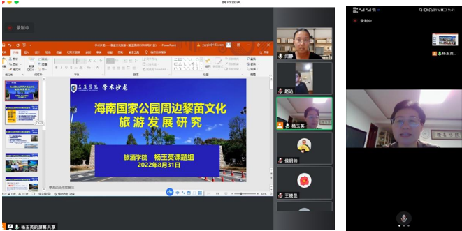 为积极推动团队暑期的科研工作,8月31日下午,我院旅游高质量发展团队在线上召开了《海南国家公园周边黎苗文化旅游发展研究》课题沙龙研讨会。本次研讨会由团队负责人海南旅游消费研究院院长杨玉英研究员主持,并邀请了海南省发改委赵霄伟副研究员、旅游与酒店管理学院院长柴勇副教授参与研讨。