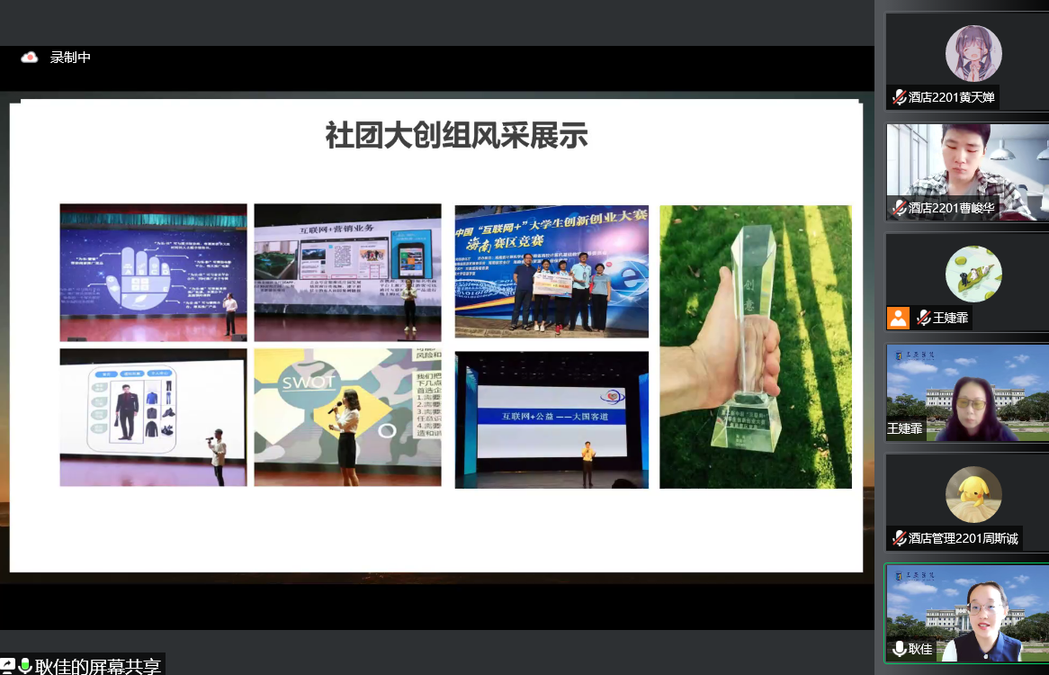 王婕霏老师对耿佳老师进行了介绍,并邀请耿佳老师为学生们进行了对大学生创业社团的详细介绍,耿佳老师讲述了大创社团含义和未来的发展前景,并举例了多方大学生创业成功的案例,增强了学生们自信心,让学生们处在当前时代风口可以不再迷茫。同时,通过大数据为学生们展示了项目立项成果,鼓励学生们积极踊跃参与社团。
