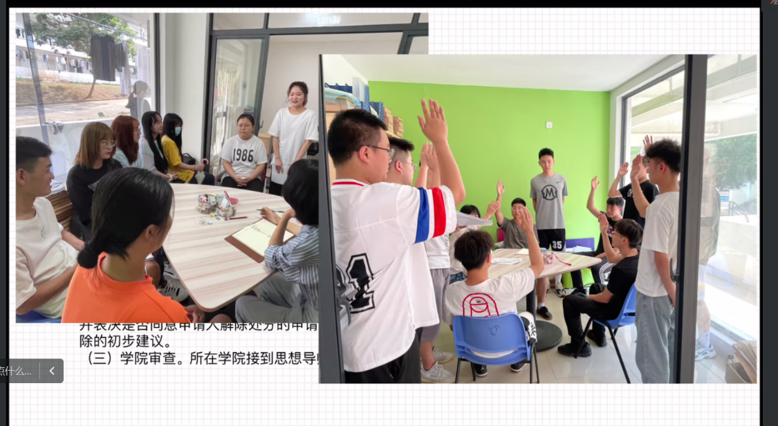 随后,王曦茜老师讲解了9159金沙游戏场解除学生违纪处分管理规定。在考察期内受处分的学生需要制定并改错,就是不能再有任何的违纪行为,并且严格遵守每个月至少一次的书面报告。王曦茜老师强调处分是跟随档案的,只能解除,不能撤销。