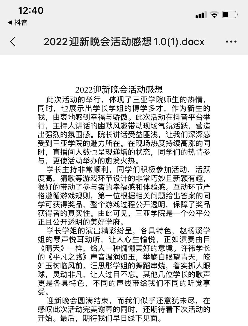 会展2201班的张思瑶参加迎新晚会的感想