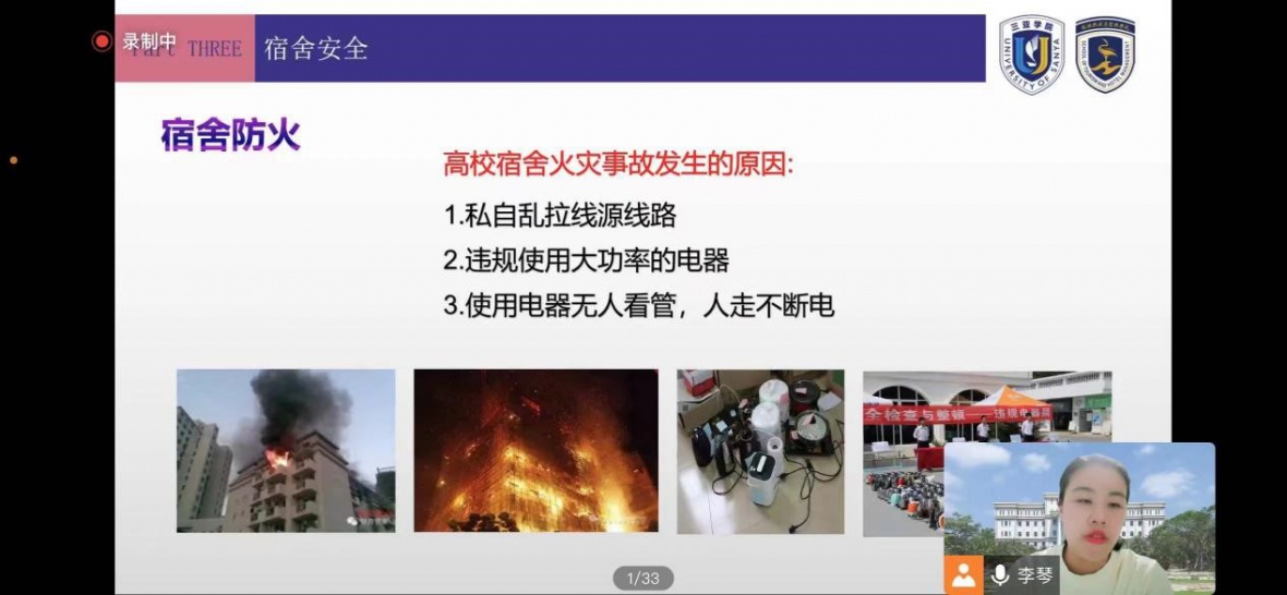 然后,李琴老师为新生讲解了宿舍安全和校园防“骗”。分为宿舍防盗、防火(违规电器、不安全行为)等不安全行为,提醒学生们要爱护公共资源,要对学生及自己的生命安全负责,用自己的责任意识杜绝不安全行为的发生。在校园防“骗”中,李琴老师通过诈骗案例使学生们了解到诈骗手段及方式方法,提前做出正确的辨别判断。例如诈骗电话、钓鱼网站、校园贷款(着重强调诈骗方式)等,提醒学生们提高防范意识,远离诈骗。