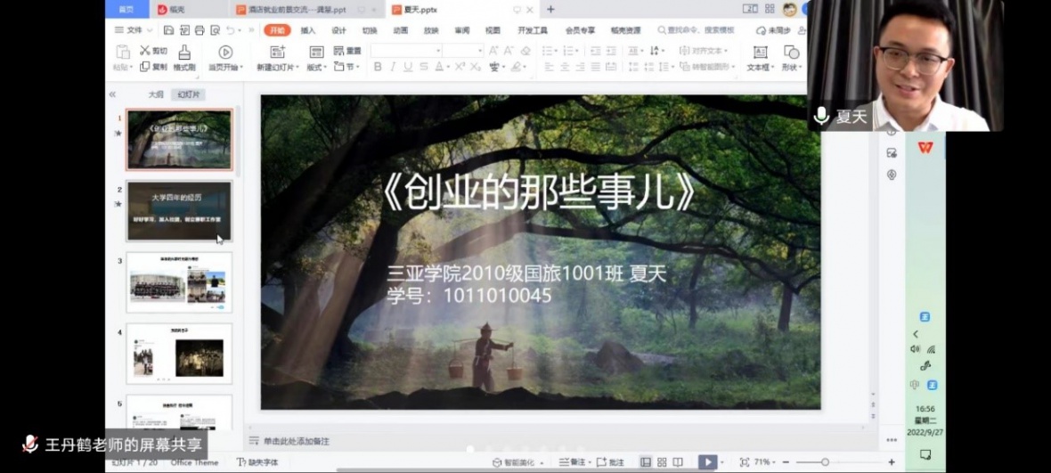 酒店行业不断发展,为让22级新生更好的了解酒店行业以及今后就业问题。我院酒店专业老师王丹鹤、龚慧在9月27日于腾讯会议为22级酒店新生讲解“酒店专业的就业前景及创业与考研”课程。