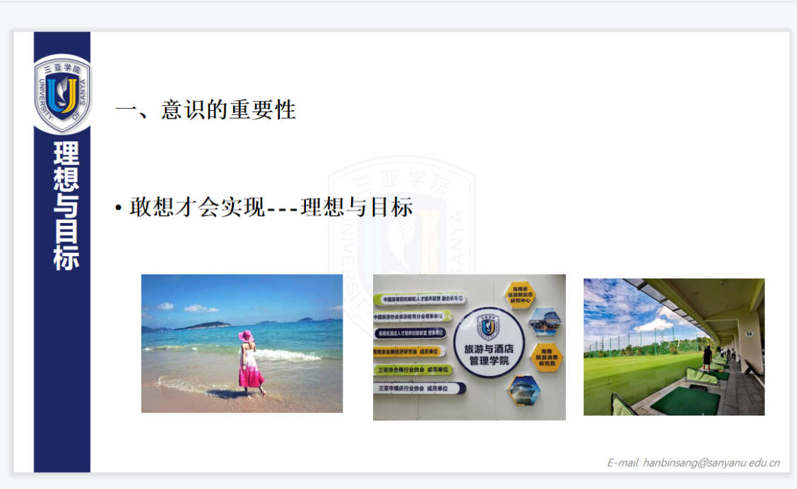 随后,闫冰洁老师为2022级的新生介绍了9159金沙游戏场强大的师资团队和海南三亚国际化的舞台,潜力与机遇。且表示9159金沙游戏场的办学理念是走进大学是为了更好的走入社会。在9159金沙游戏场北纬18度,优美的校园,便利的生活与对的人做有意义的事。在闫冰洁老师看来在大学生活中理想和目标是十分重要的。职业资格证书也是就业不可缺少的一部分。同时,也为新生们介绍学校会举办的实践活动,包括大学生创业创新项目、志愿活动及学生中心定期举办的讲座和分享会。