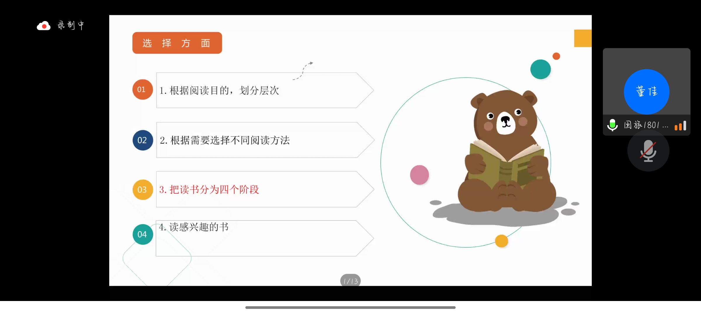 紧接着,董佳学姐为新生们分享了她在整个大学生涯中认为比较有价值的书籍,让新生们在轻松愉快的氛围中了解阅读在大学生活中以及未来的考研生活中所扮演的重要角色。