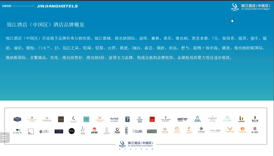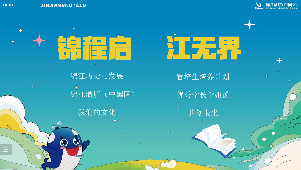 在本次宣讲开始之前,酒店负责人江贯虹为我院学生播放酒店视频,以便接下来讲解让学生更好的了解本酒店。宣讲伊始,负责人向大家介绍了锦江的历史与发展,让学生更加熟悉酒店的发展历程。并向大家进行提问,试举例锦江酒店(中国区)旗下品牌,这一阶段的安排,充分调动了我院学生积极性,大家踊跃参与回答。