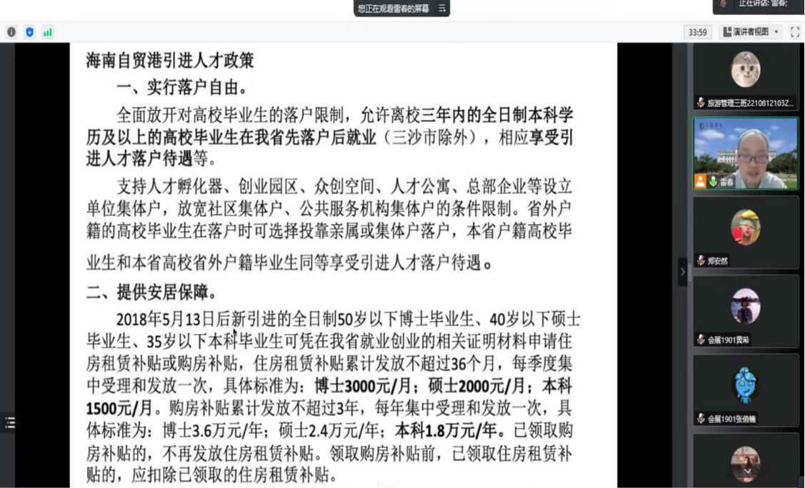 紧接着,雷主任还介绍了海南自贸港引进人才政策,鼓励学生们要抓住良好的机遇,同时也对想创业的学生也做出了建议。然后,雷主任又提出了马斯洛需求实验,给学生们描述了志业生涯和职业生涯的不同。