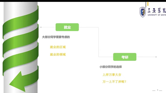 在面对种种由学生思考的“自我打算”时,闫静老师用温柔的话语提出了自己的看法,以及推心置腹的建议。不可否认,疫情带来了不可逆转的影响,但大家的理想却并未泯灭,要始终相信:没有看起来十分容易的信手捏来,只有日复一日不间断地努力才能扬起理想的船帆。从就业方面来讲,大部分学生需要考虑的是就业的区域,与就业的领域。