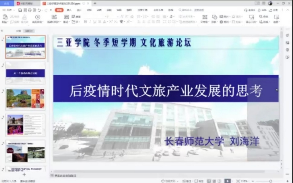 为了让我院22级学生能够更好地了解在后疫情时代下文旅产业的发展,我院于12月24日下午6时,在钉钉召开了关于“后疫情时文旅产业发展思考”的会议,会议邀请了长春师范大学的刘海洋老师为我院22级学生进行分享,我院22级学生积极参加会议。
