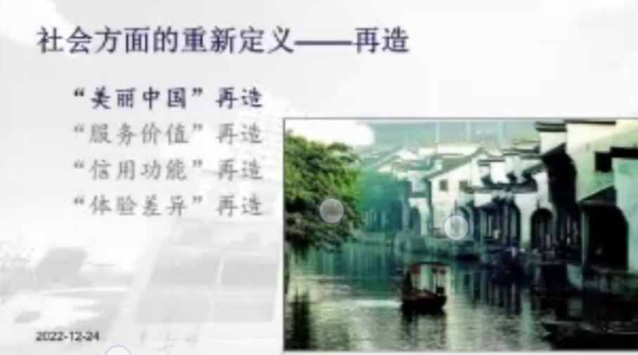 刘海洋老师从社会方面分析认为,第一,文旅产业可以为社会方面提供美的享受与美的体验,以乌镇为例,发展旅游产业同时为乌镇再造美丽;第二,导游是具有帮助社会文化重新塑造的民间大使,旅游业的职业价值将得到更大重视;第三,旅游是人与人之间交往的媒介和节点,旅游业将成为游客信用数据的重要来源;第四,随着旅游业硬件设施不断提高,游客对产品需求从标准化转向个性化。