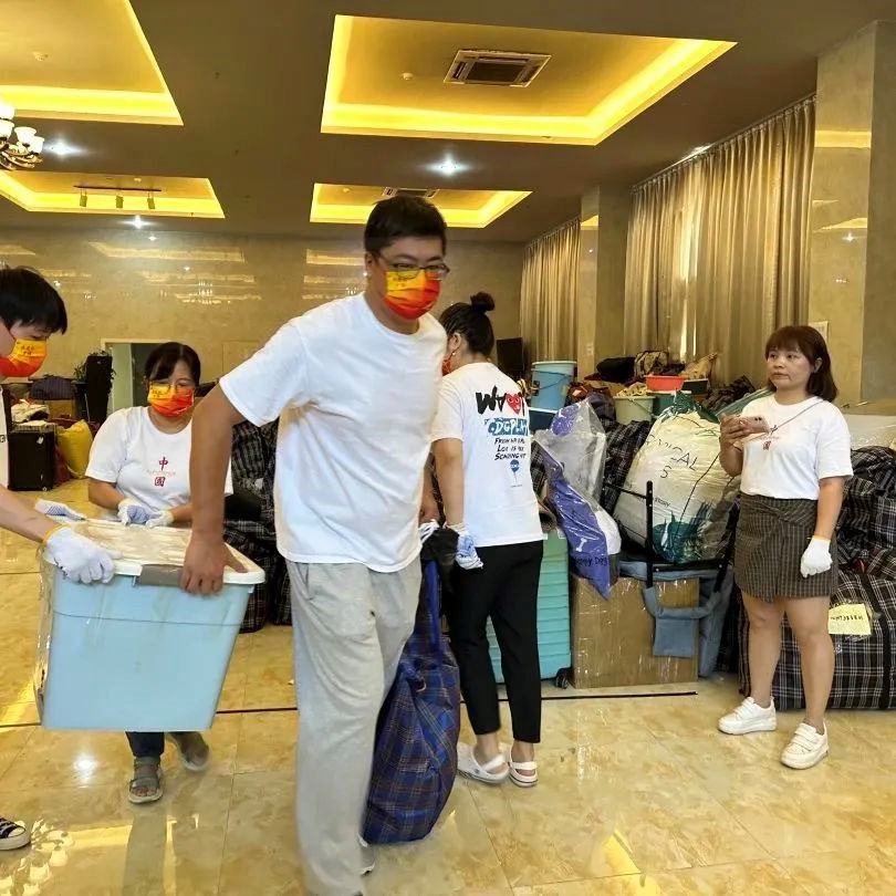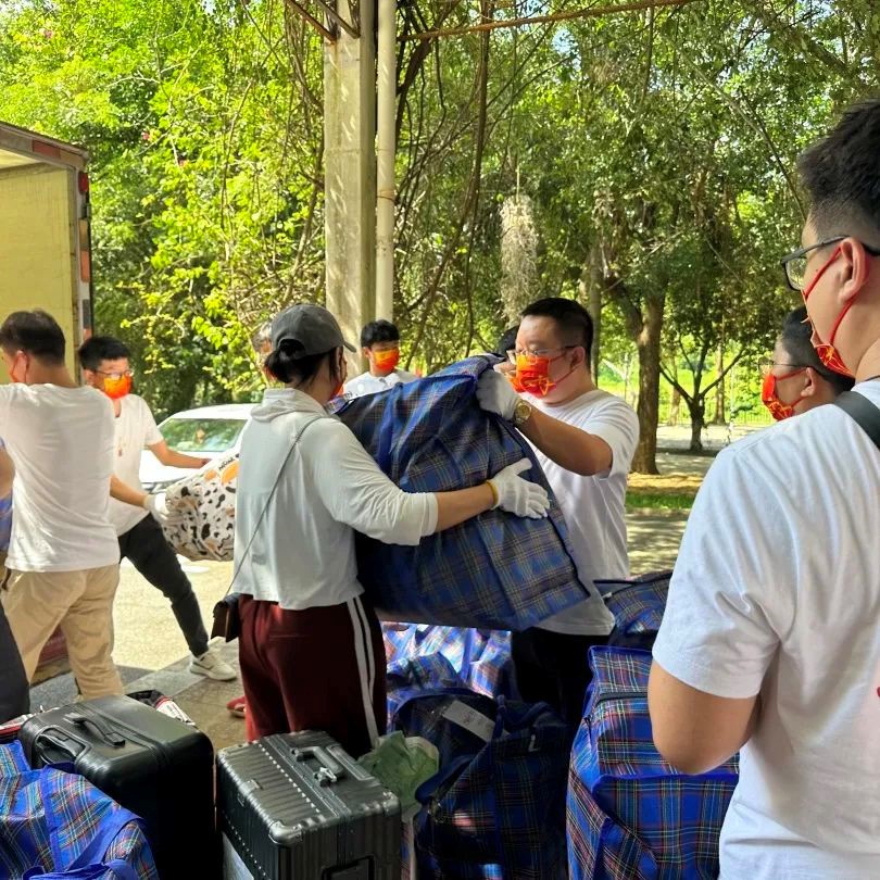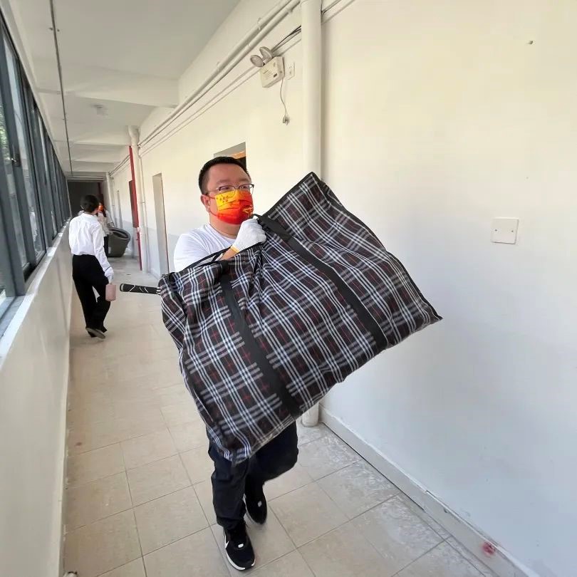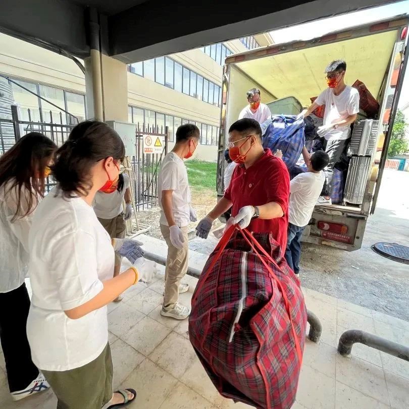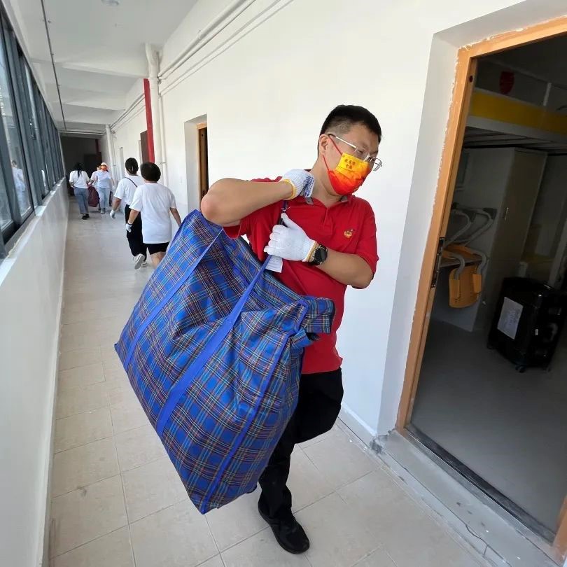 为了学生们返校过程轻松顺利,老师们齐上阵,将老生因为装修宿舍搬出来的行李点对点的根据名字放到所属宿舍。
